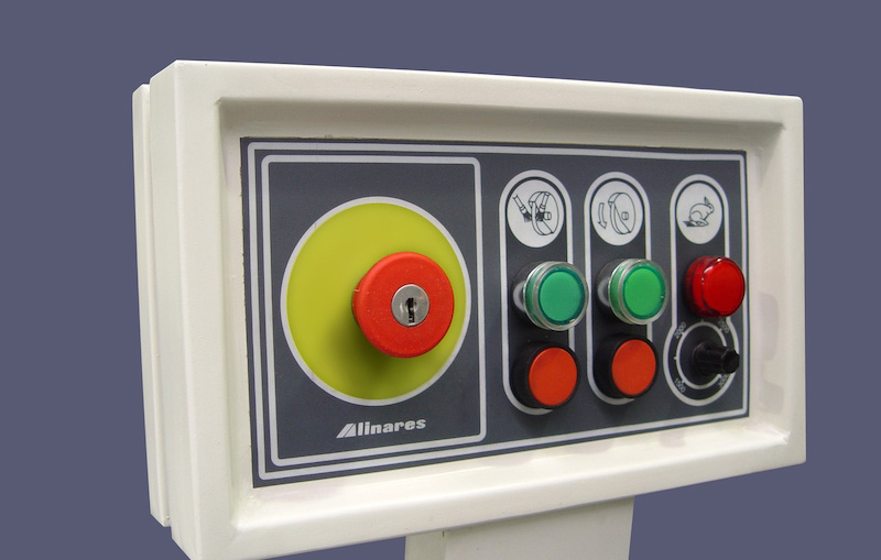 Sistema de velocidad de la piedra de afilado controlado por variador de frecuencia electrónico. Estos valores de velocidad son ajustados mediante un potenciómetro ubicado en el panel de control.